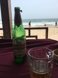We walked through to a bar and set ourselves up for the afternoon. There were tables and chairs on the beach under huge parasols. Jack and I shared big bottles of Kingfisher (so they didn’t have time to get warm). Georgie had a few daiquiris and then switched up for vodka. We started talking to a couple from Liverpool sat at the next table. They eventually joined us. Jo and Dave were in Goa for three weeks as they had worked out it was a much easier option than waiting for their new place to be available at home after moving. They had a son who had been backpacking a year or so before and they clearly had the travelling bug too. Their place was on Agonda itself.