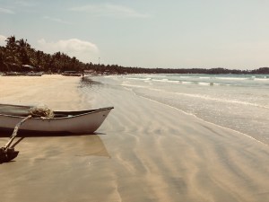 The call to prayer woke me up again. I listened to the rain and the insects until breakfast. I had egg and beans on toast with juice and coffee – I still hadn’t worked out how to “do Indian” for breakfast. I walked to Palolem and wandered around the coast, trying to find Butterfly Beach. I was again met by harsh rocks and turned back. I could feel my shoulders burning so sat in the shade amongst the stray dogs and honeymooning couples until I fancied a beer. I walked back to see Mr B and was told that it was Gandhi Day, a national holiday where nobody in India drunk alcohol. I had a coffee, read some Harry Potter and went for another swim in the sea.